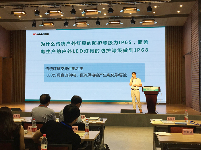 勇電大功率系列LED燈具內(nèi)置二次封裝模塊光源,可以組成不同形狀不同用途的大功率LED燈具如線條燈、洗墻燈等,耐溫200℃以上的防水封裝材料使得燈具的防塵、防水達(dá)到IP68等級(jí)。李總監(jiān)在現(xiàn)場通過與案例相結(jié)合講解了勇電大功率的防水性能在不同場合的應(yīng)用。