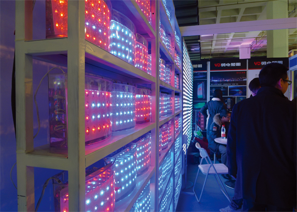 由72個(gè)魚(yú)缸和2304顆防護(hù)等級(jí)達(dá)到IP68的Φ20二次封裝LED點(diǎn)光源,每個(gè)魚(yú)缸中有許多小魚(yú)來(lái)回游動(dòng)組合成一面大型LED“魚(yú)缸顯示屏”,在2012中國(guó)(北京)國(guó)際照明展暨LED照明技術(shù)應(yīng)用展覽會(huì)亮相,引起了與會(huì)都爭(zhēng)相參觀。如此富有新意的展臺(tái)布置及高品質(zhì)的防水LED燈吸引了眾多參觀者的目光,新聞媒體也對(duì)我司進(jìn)行了現(xiàn)場(chǎng)采訪。