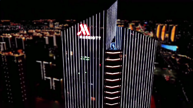 萬豪酒店以現(xiàn)代充滿設(shè)計感的超高雙塔建筑造型及現(xiàn)代摩登夜景照明成功吸引了受眾目光,夜晚,勇電燈光賦予建筑生命力,體現(xiàn)出建筑的獨特韻律,具有很強的宣傳作用,成為萬豪酒店品牌推廣強勢且有效的工具!