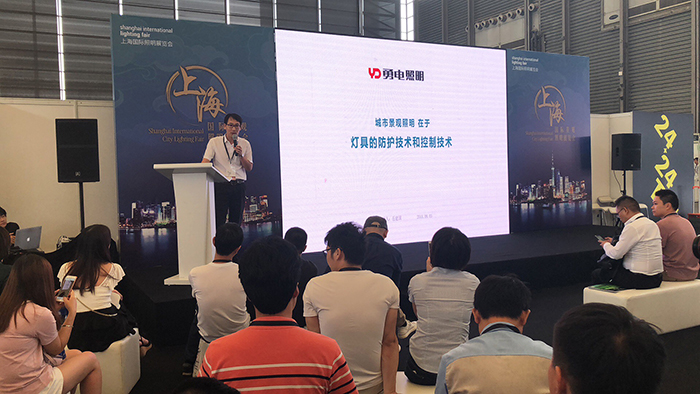 展會(huì)期間,勇電積極參與行業(yè)交流活動(dòng),圖為勇電研發(fā)副總監(jiān)岳建國(guó)在24X24Talk論壇上發(fā)表《城市景觀照明在于燈具的防護(hù)技術(shù)和控制技術(shù)》演講。
